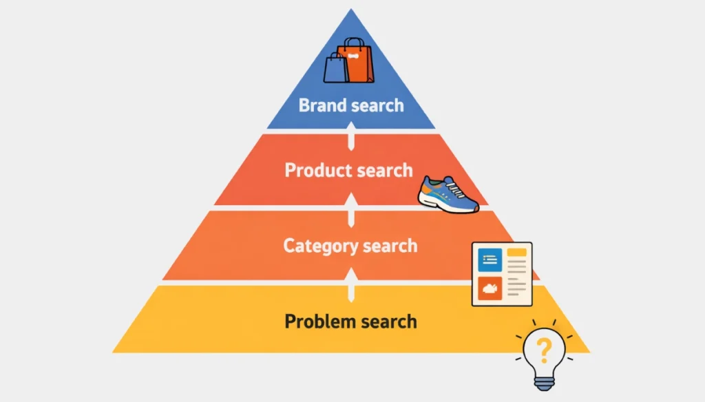 In this way, e-commerce reflects the way people search, not just the way products are organized. E-commerce traffic does not come from the product, but from the need that precedes it.