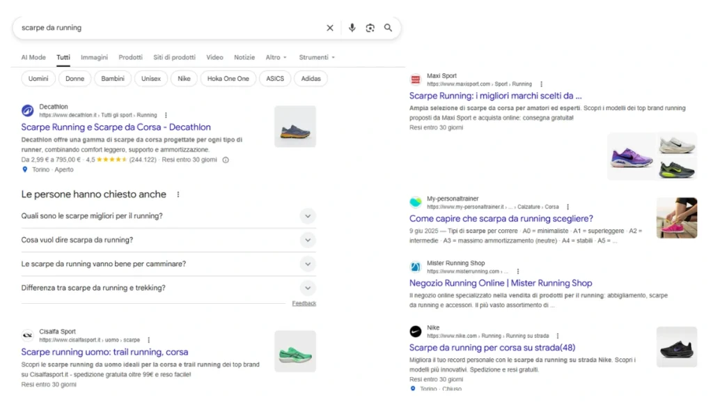 This is where category pages come into play. Many e-commerce websites treat categories as simple navigation tools, but for Google, they are much more than that. Categories are product discovery pages. When a query is generic, Google tends to show results that allow the user to compare multiple options, explore different products, filter and choose. For this reason, in the SERPs we often find e-commerce categories, marketplaces, comparators and buying guides.